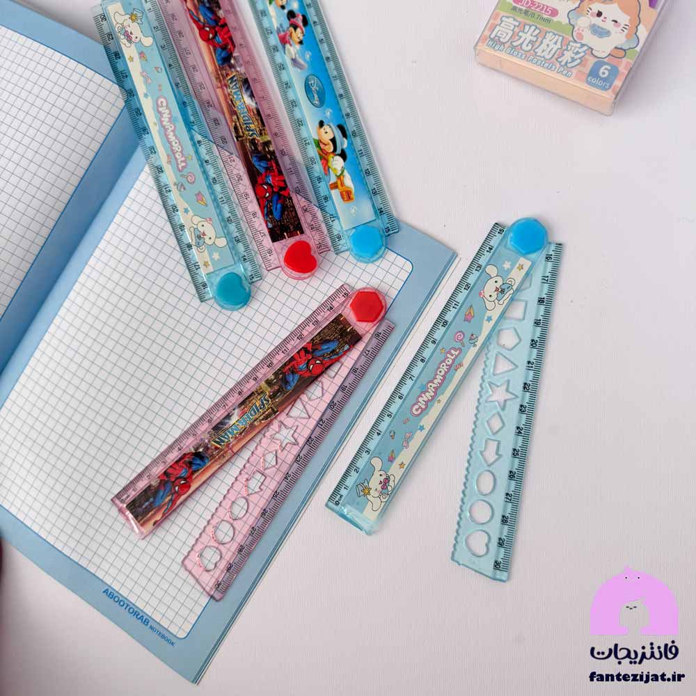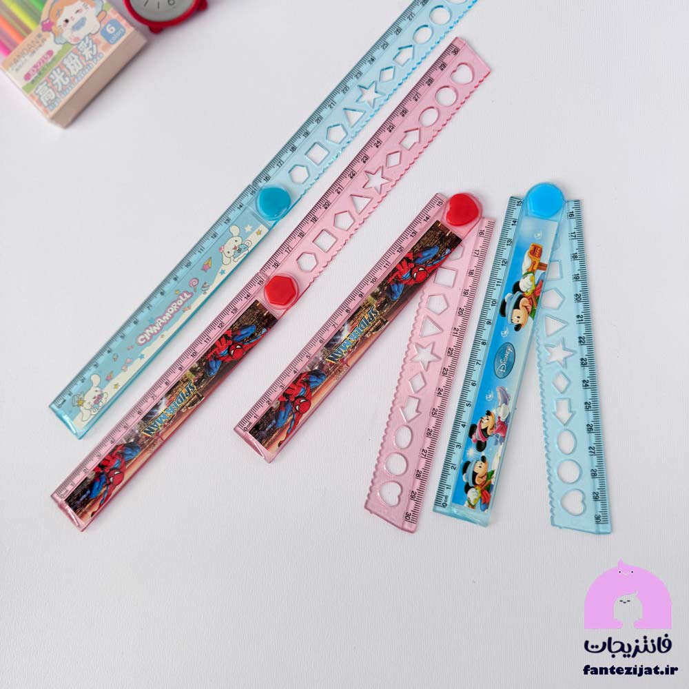 خط کش های بلند و بیشتر از 20 سانت، همیشه مشکل جاگرفتن در جامدادی را دارند. مدل های تاشو راه حلی برای رفع این مشکل هستند. این خطکش با کاربرد دیگری که دارد، یعنی شابلون هندسی با طول 30 سانت براحتی در انواع کیف و جامدادی قرار می گیرد. می توان با آن خطوط صاف و هلالی کشید.