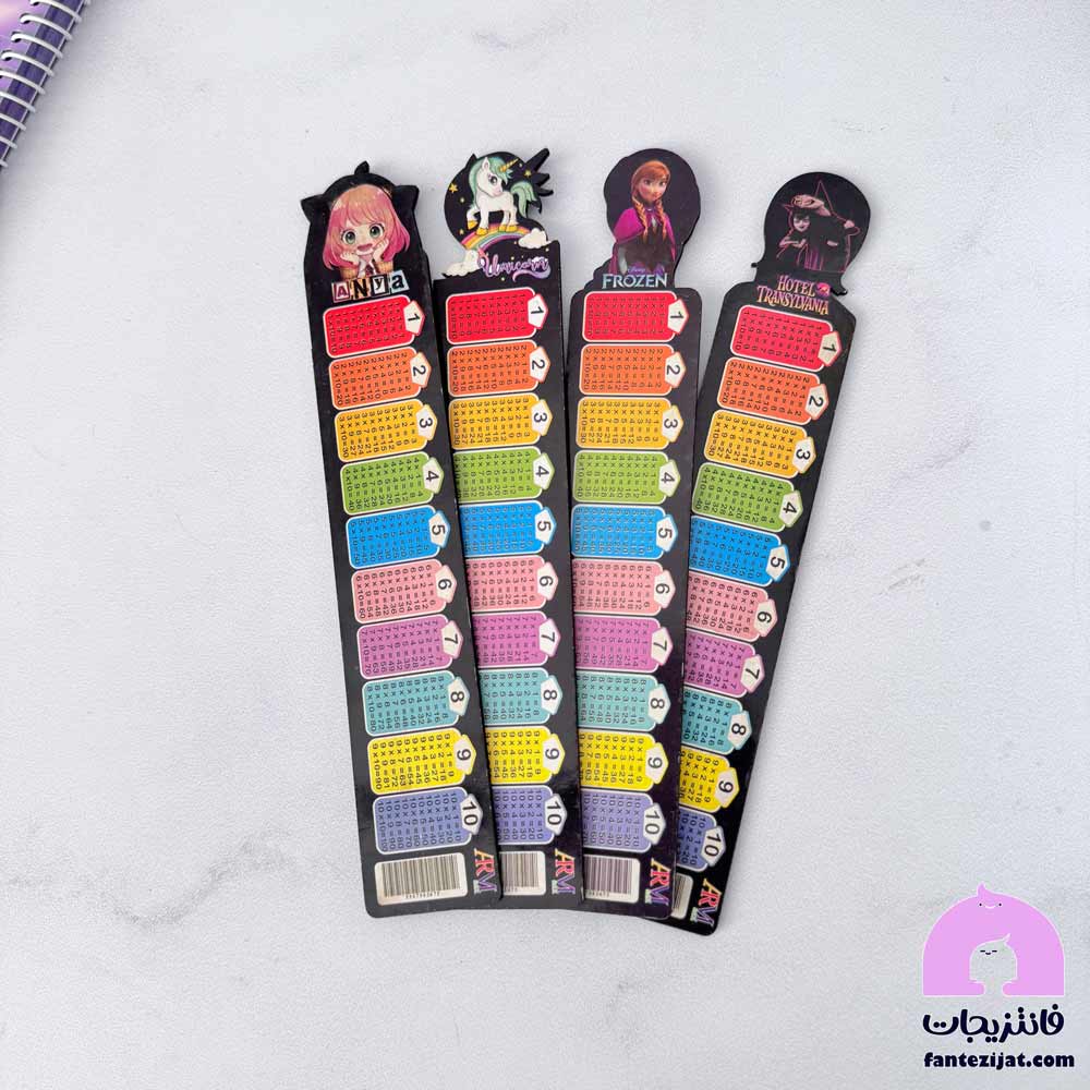 قسمت پشت خط کش، جدول ضرب با اعداد انگلیسی دارد.