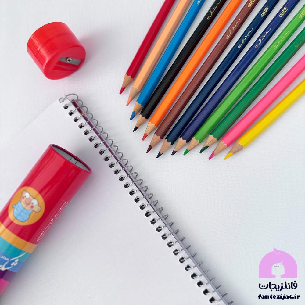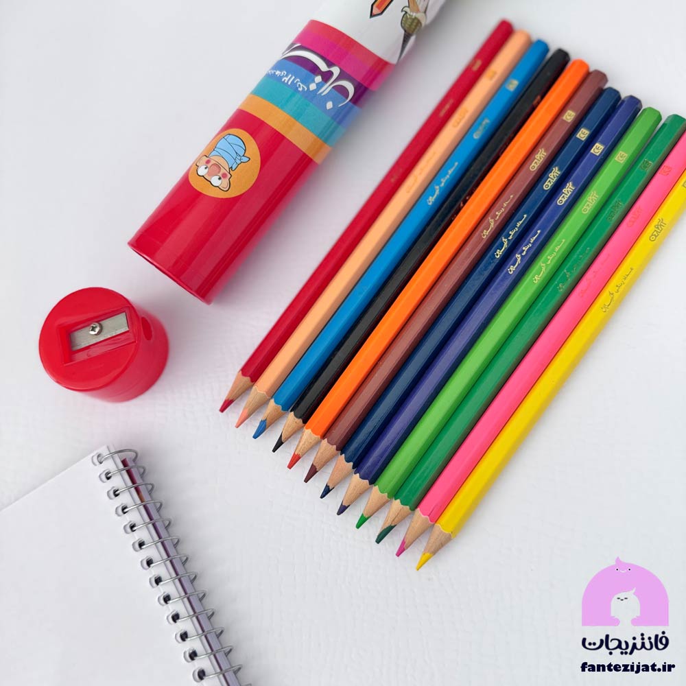 یکی از لوازم تحریر مهم و مورد نیاز مدرسه و مهدکودک ها، مدادرنگی می باشد که هر چه کیفیت بالاتری داشته باشد، بهتر است. مدادرنگی 12 رنگ، تقریبا تعداد مناسبی هست که اکثر رنگ های لازم برای کشیدن یک اثر خلاقانه را توسط کودک داراست. یکی از مدادرنگی های فروشگاه آنلاین فانتزیجات، این مدادرنگی از برند شکرستان، با بسته بندی قوطی فلزی و رنگ جذاب قرمز هست. در قسمت درب آن، یک عدد مدادتراش قرار دارد.