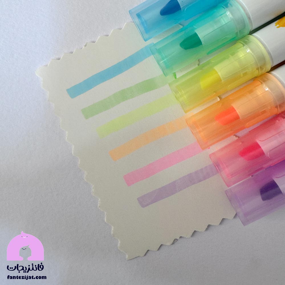 ماژیک هایلایتر (علامت زن) جهت هایلایت یا رنگ کردن تیترها و متن مهم در کتاب و دفتر کاربرد دارد.