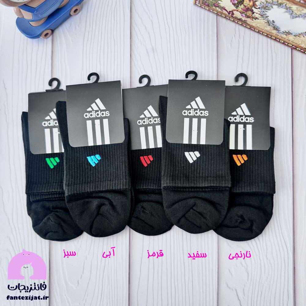 رنگ اصلی جوراب مشکی و رنگ گلدوزی طرح آدیداس روی قسمت ساق، متفاوت است.
