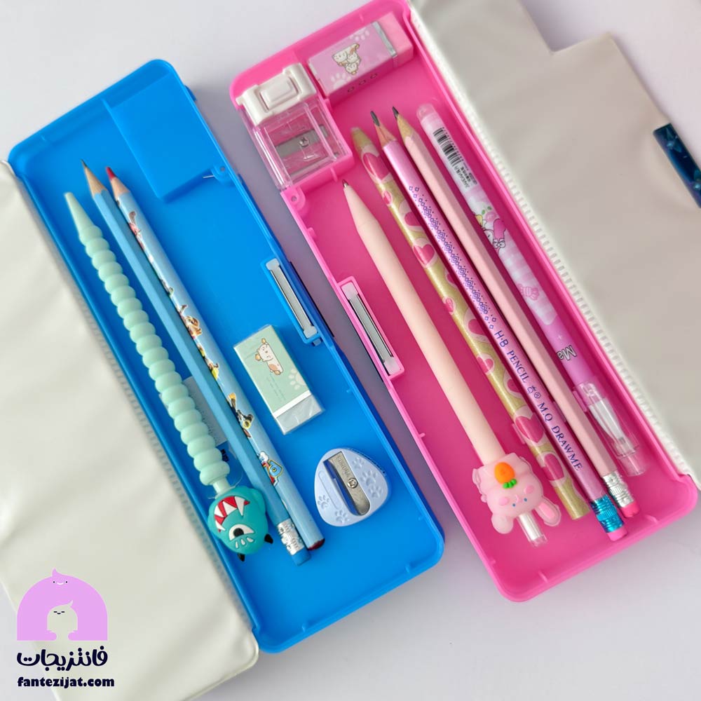 توجه: در نظر بگیرید که اندازه آن، برای پاک کن و مدادتراش های کوچکتر که برجستگی کمتری دارند، مناسب می باشد. برای اینکه از دو طرف براحتی بسته شود.